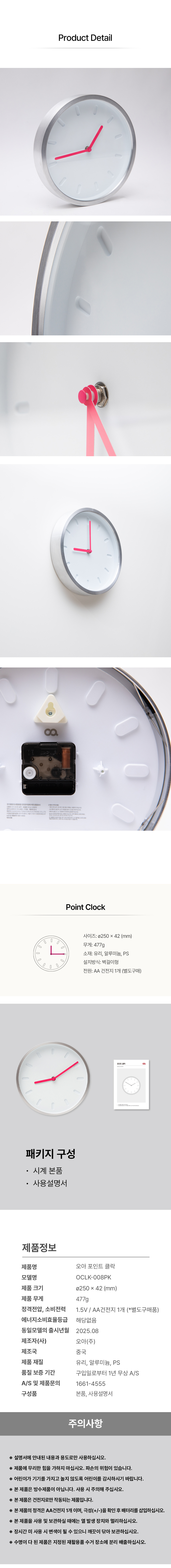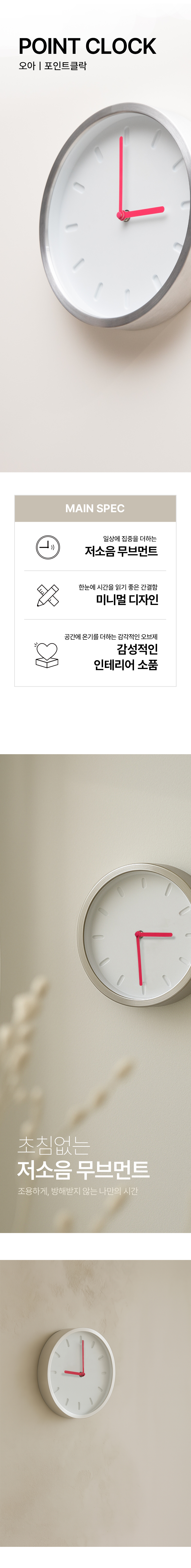 • [오아] 포인트클락 인테리어 거실 원형 저소음 아이방 디자인 벽시계 A01853