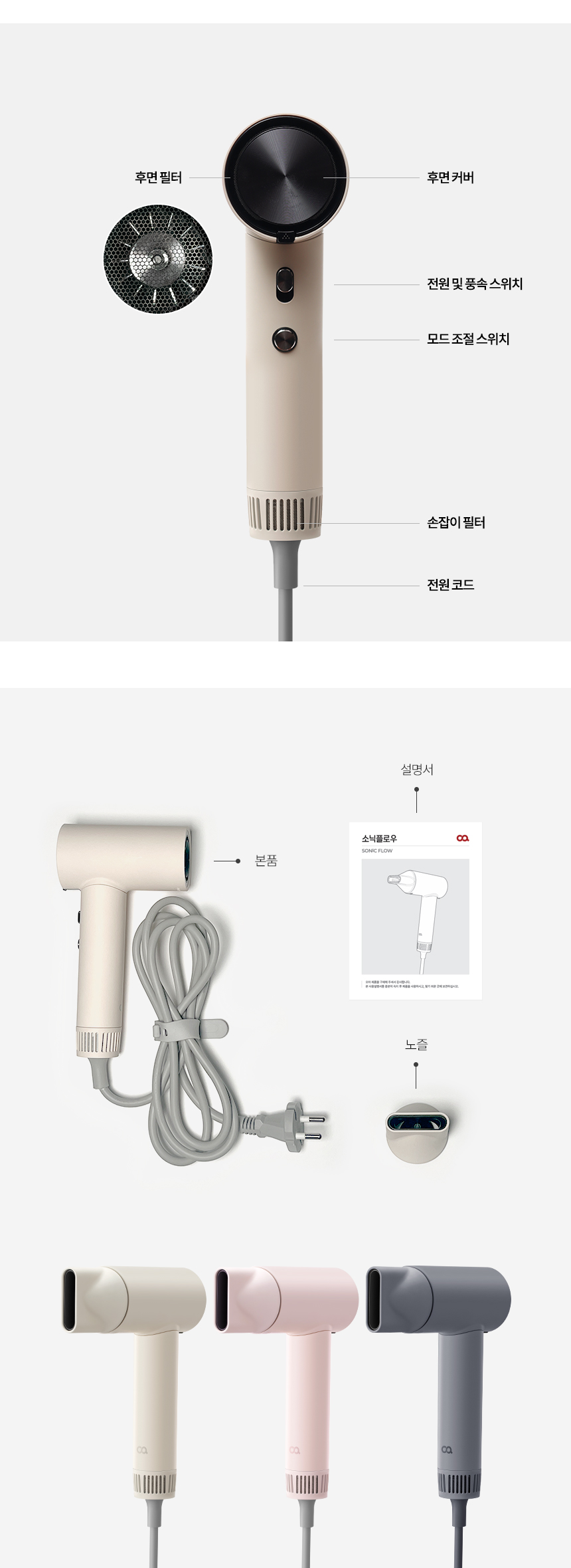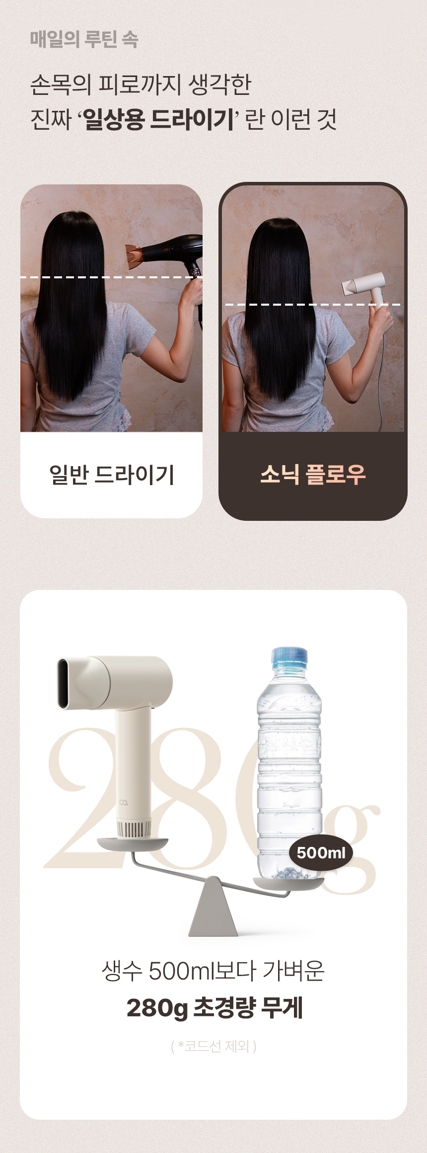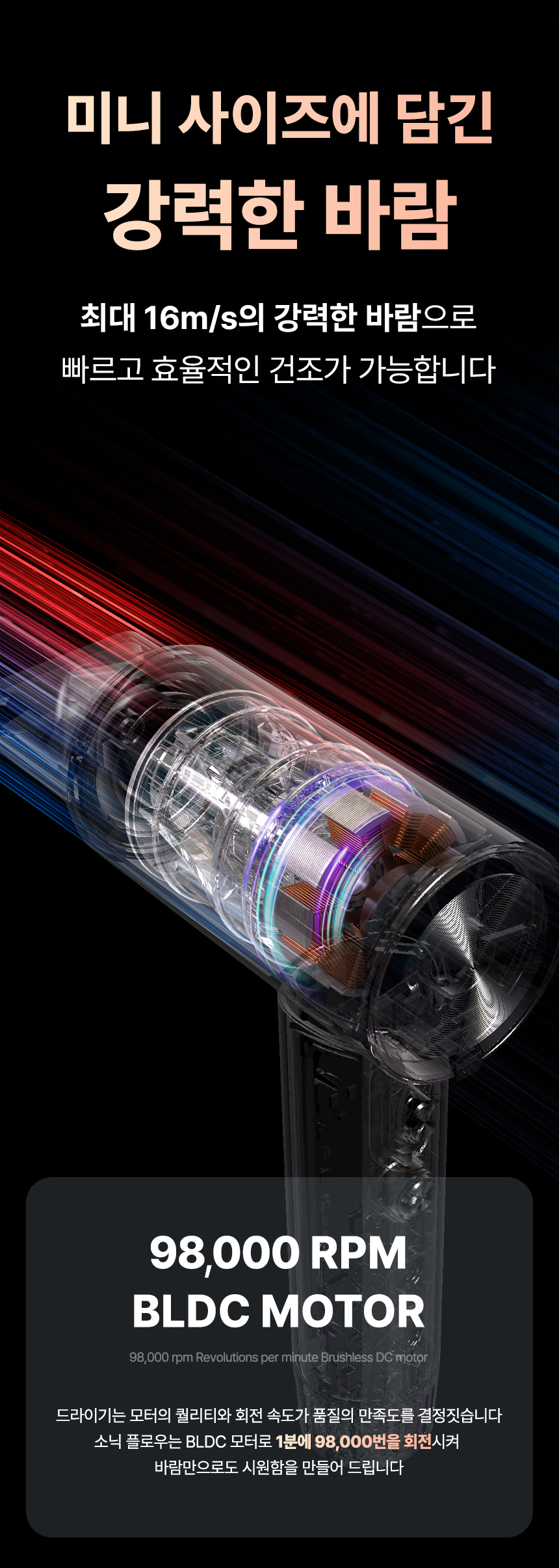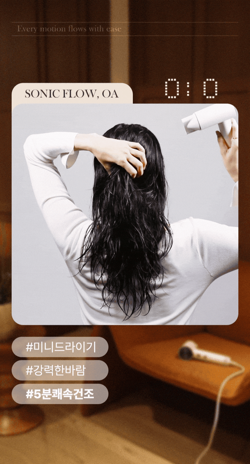 • [오아] 소닉플로우 미니 드라이기 고속 BLDC 헤어 드라이어 음이온 초경량 휴대용 여행용 항공모터