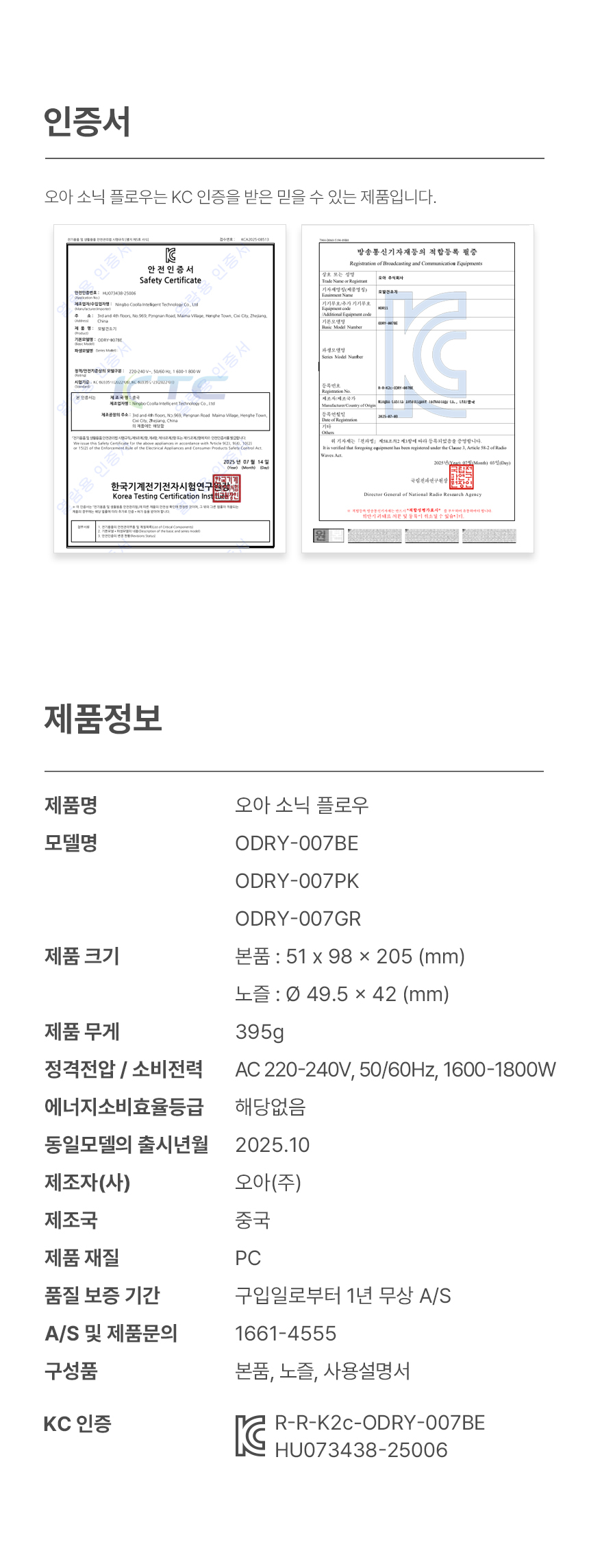 상품 상세 정보 기본 정보 교환 및 환불정보