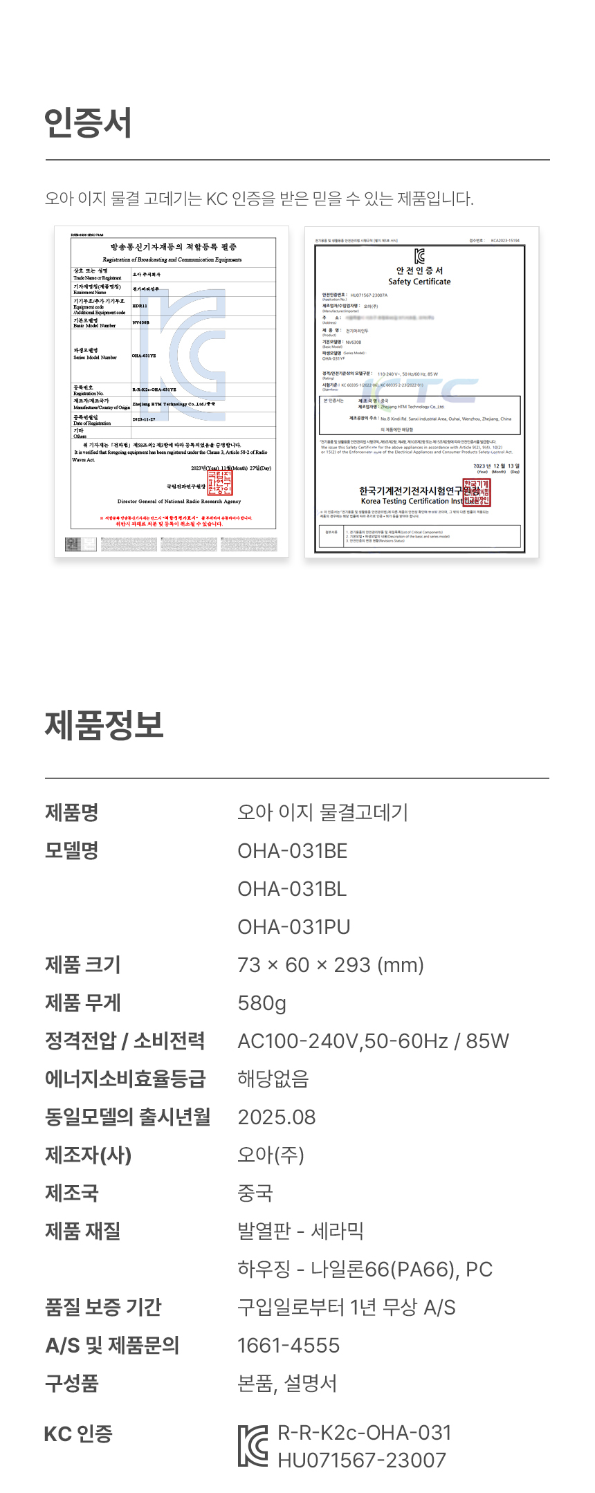 상품 상세 정보 기본 정보 교환 및 환불정보