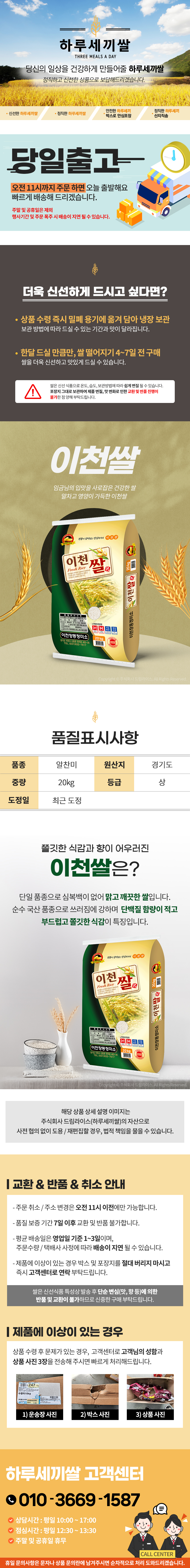 • [하루세끼쌀] 25년 햅쌀 이천쌀 20kg 알찬미 단일품종 상등급 3일내도정