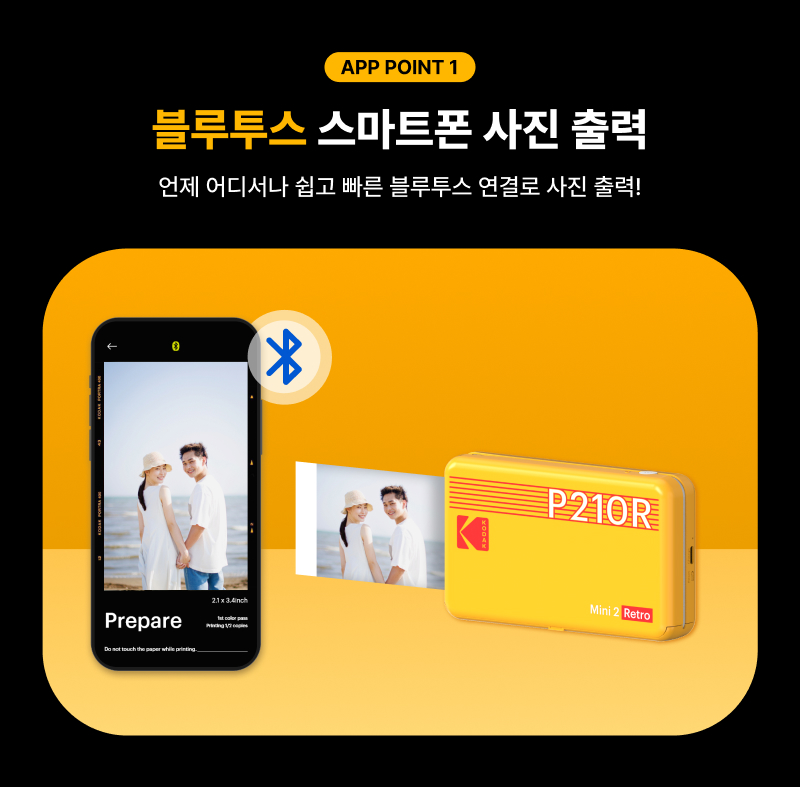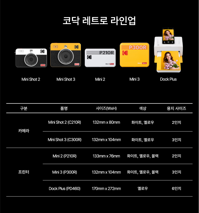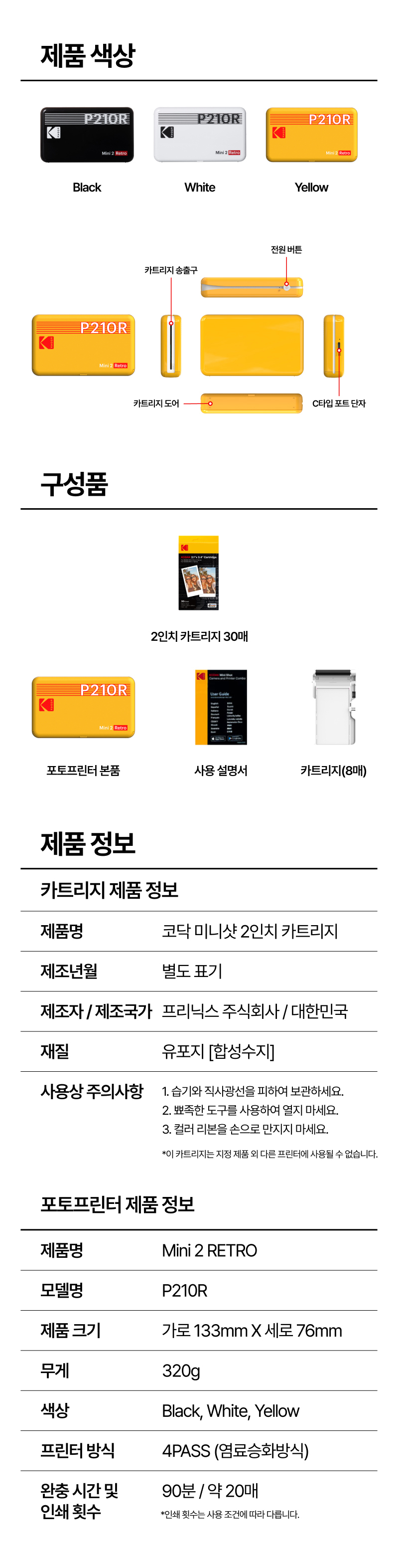 • [코닥] 포토프린터 사진인화기 미니 2 레트로 + 카트리지 38매 번들 P210R